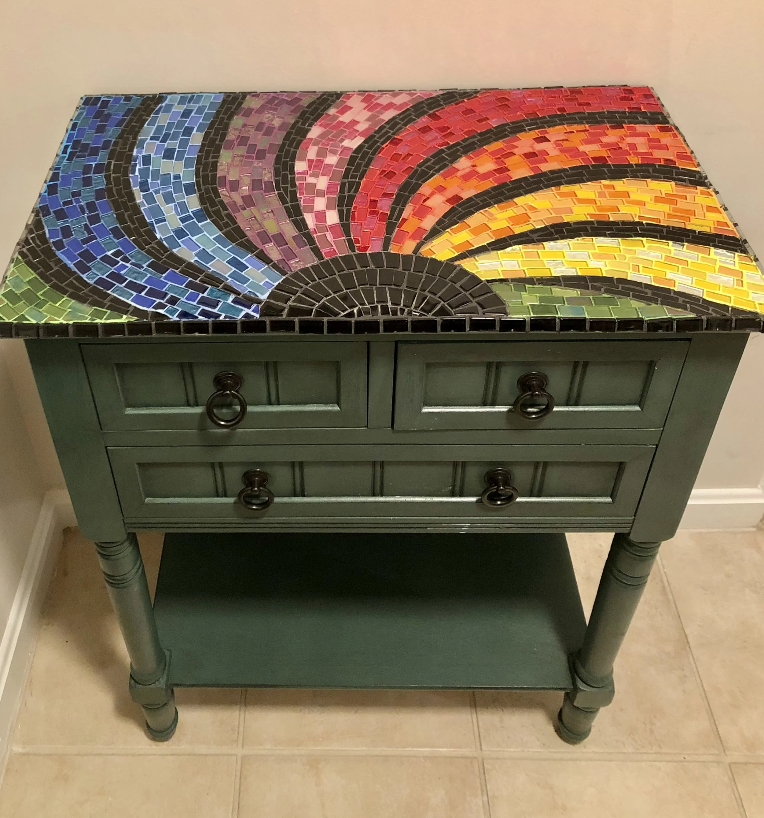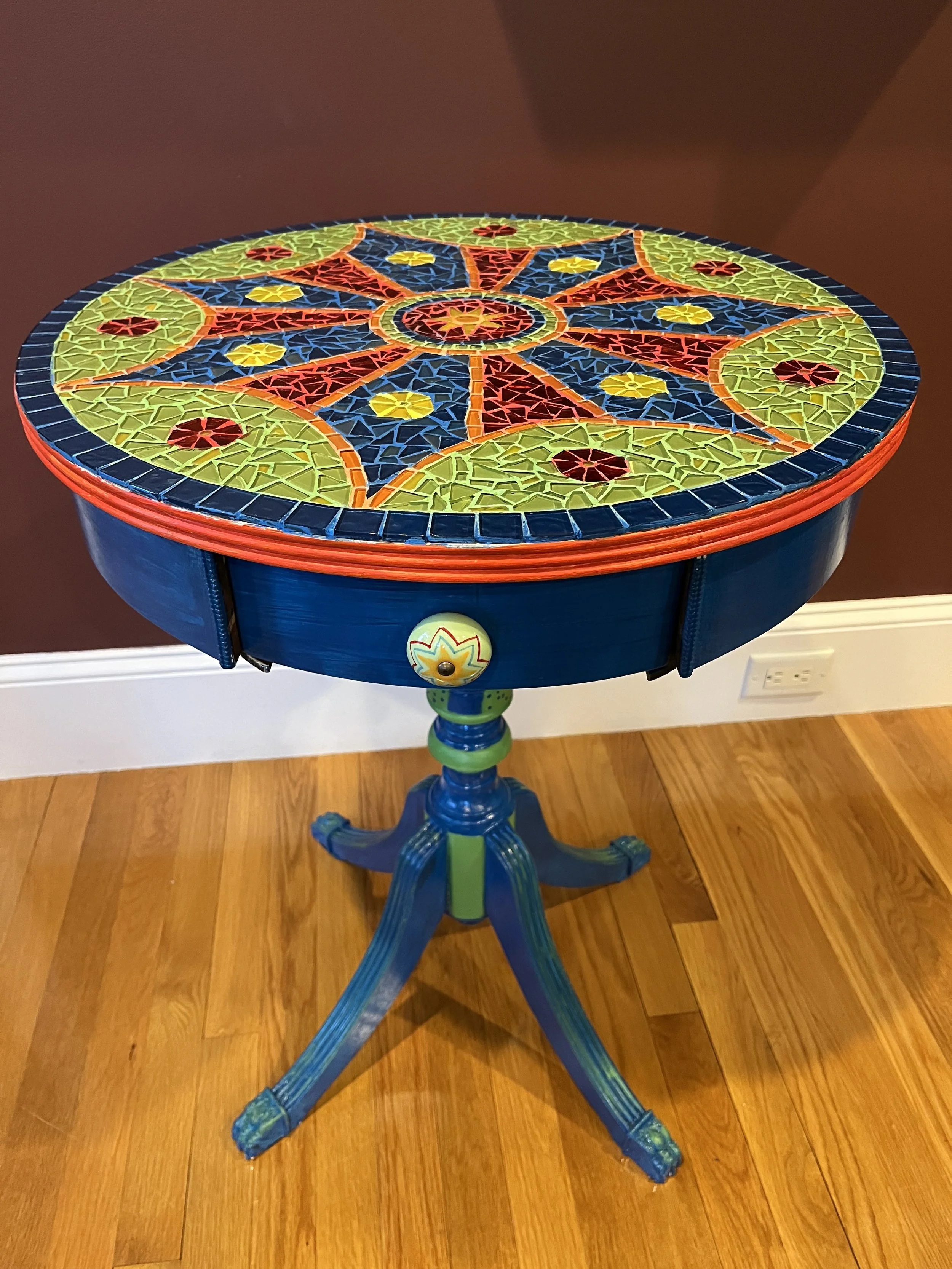 I have a passion for giving furniture a second, more vibrant life. Through the art of mosaic, paint, and decoupage each piece is reborn, blending functionality with creativity. Email me about custom work!